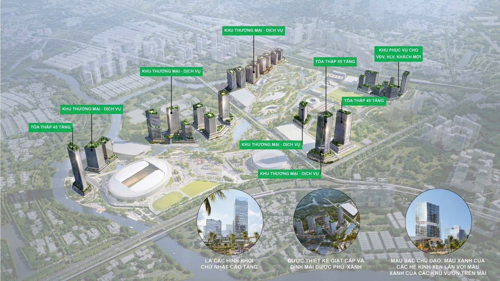 Khu liên hợp thể dục thể thao, có kết hợp với các chức năng dịch vụ - thương mại (phục vụ cho các hoạt động thể dục thể thao), không có chức năng ở; được quy hoạch và xây dựng theo tiêu chuẩn quốc tế.