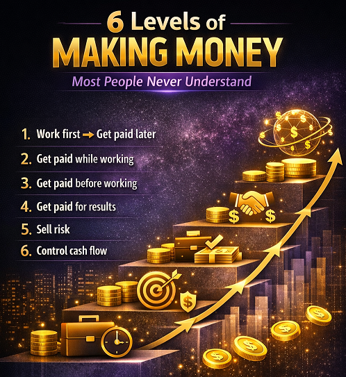 Dưới đây là 6 cấp độ kiếm tiền phổ biến nhất. Khi hiểu được chúng, bạn sẽ bắt đầu nhìn rõ tại sao có người mãi ở tầng thấp, còn có người lại leo lên rất nhanh.