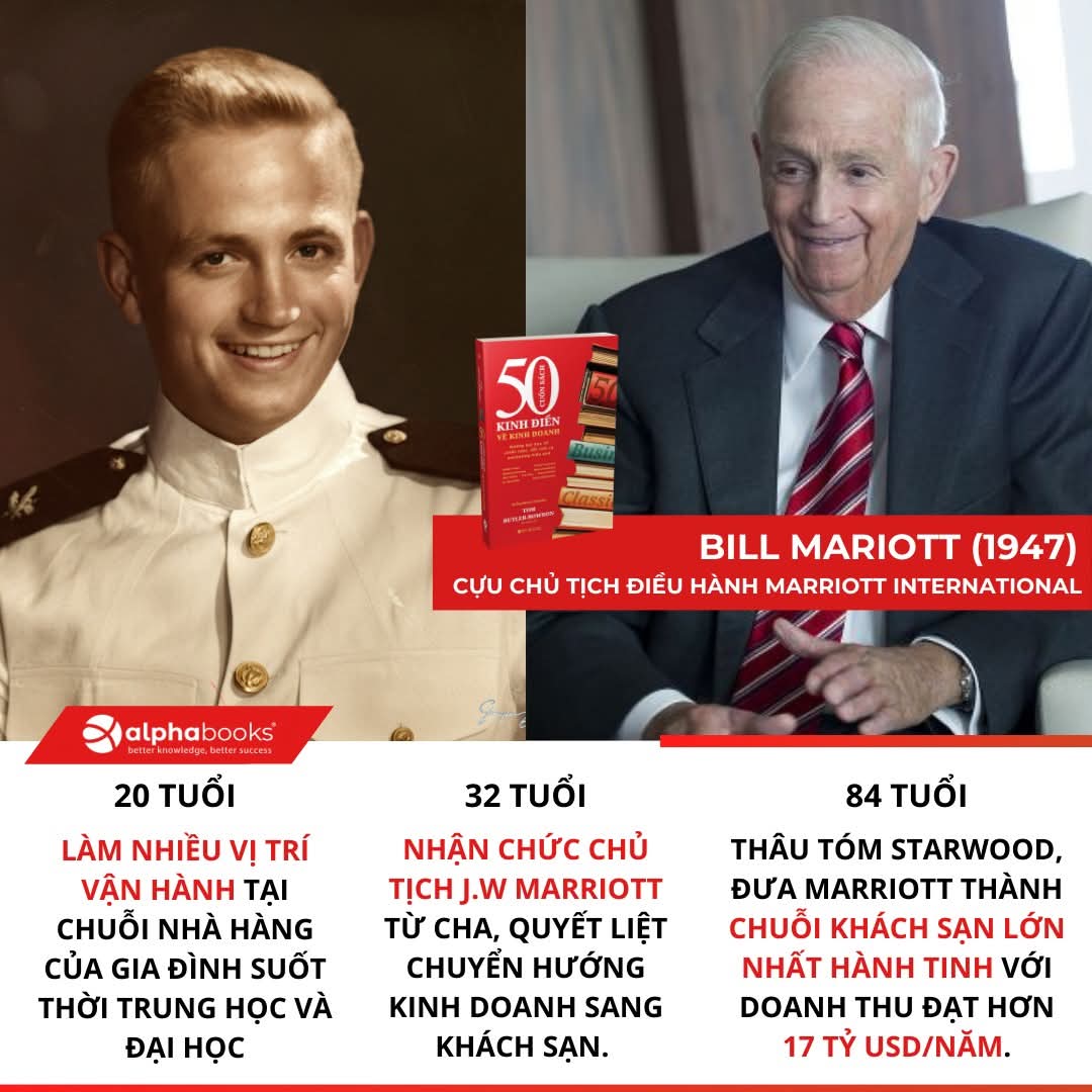 Trước khi là vị tỷ phú sở hữu 11.28% tập đoàn khách sạn lớn nhất hành tinh, Bill Marriott bắt đầu bằng việc... bưng bia tại quầy hàng nhỏ của gia đình. Trong khi bạn bè đồng trang lứa đi nghỉ mát, chàng trai 15 tuổi đã làm việc ở nhiều vị trí khác nhau trong chuỗi nhà hàng Hot Shoppes của cha trong suốt những năm trung học và đại học. Sự giáo dục của cha ông, J. Willard Marriott, không hề dễ dàng, đó chính là bài học thực tế đầu tiên, để Bill nhận ra: Ngành dịch vụ không nằm ở sự hào nhoáng, nó nằm ở việc bạn có nhìn ra được nỗi lo của người đối diện hay không. Gốc rễ của một đế chế tỷ đô đôi khi chỉ bắt đầu từ một cái gật đầu hài lòng của người mua cốc bia lẻ.
