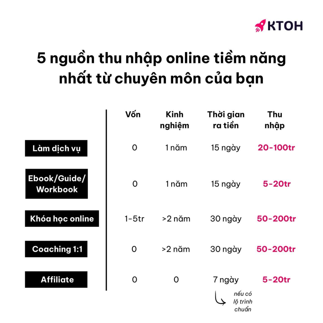 Đây là cách để tạo thu nhập thụ động từ chuyên môn. Bạn đóng gói kiến thức, công cụ, quy trình mình đang dùng mỗi ngày thành sản phẩm dễ áp dụng cho người mới.