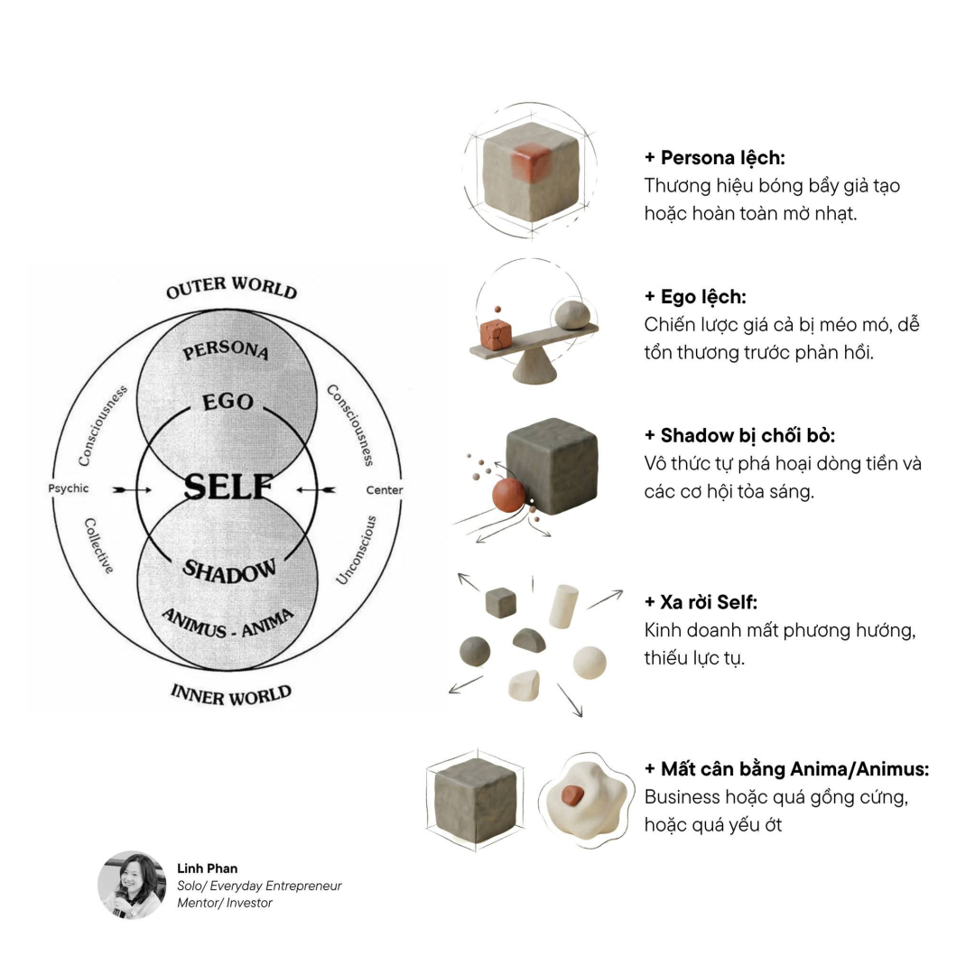 Tiếp tục như đã hứa, sau bài viết phân tích về sự phát triển sự nghiệp từ lăng kính phân tâm học của Carl Jung, bài này mình sẽ viết sâu hơn ở khía cạnh kinh doanh. Nhiều điểm nghẽn trong kinh doanh thực ra không phải là lỗi của content, sales hay cách bạn đóng gói sản phẩm. Nó là câu chuyện của Persona (Mặt nạ xã hội), Ego (Cái tôi), Shadow (Góc khuất) và mức độ thống nhất bên trong của chính bạn.