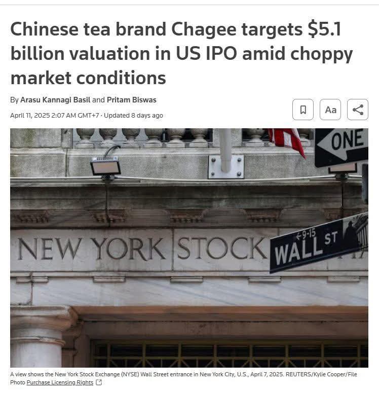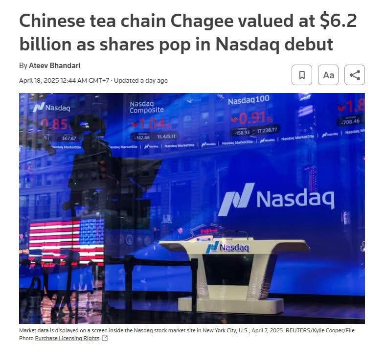 CHAGEE đã niêm yết thành công trên sàn Nasdaq vào ngày 17 tháng 4 năm 2025. Đợt IPO này đã huy động được 411 triệu USD, định giá CHAGEE ở mức 6,2 tỷ USD, và đẩy giá trị tài sản ròng của Zhang lên khoảng 2,1 tỷ USD, theo Bloomberg Billionaires Index. Bỏ qua việc bị tẩy chạy tại Việt Nam thì hành trình của Junjie Zhang và việc CHAGEE niêm yết trên Nasdaq là một sự kiện lớn của ngành F&B quốc tế