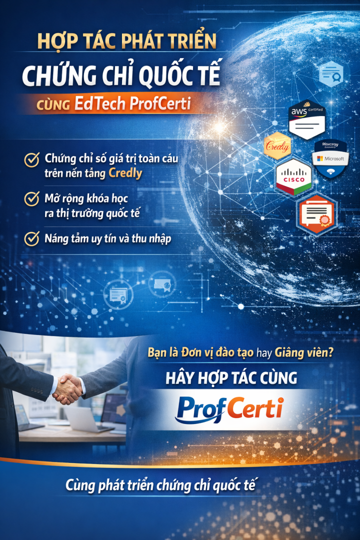👉 Hãy hợp tác cùng ProfCerti để cùng nhau kiến tạo hệ sinh thái giáo dục toàn cầu.