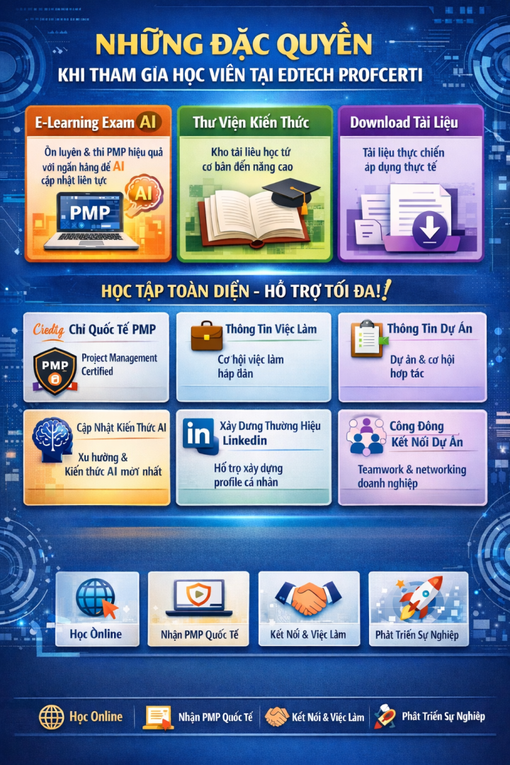 E-learning Exam với AI: https://profcerti.com/e-learning/pmp-e-learning/