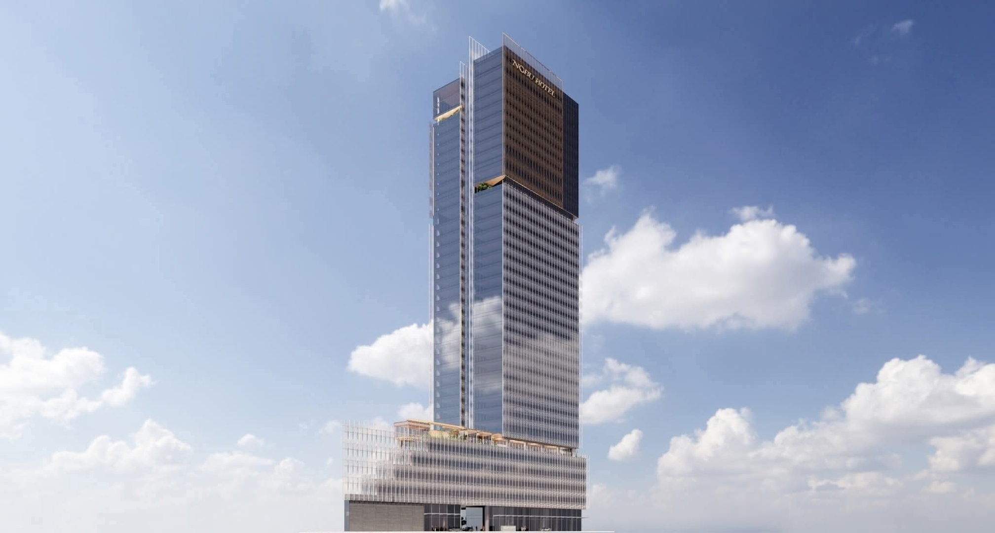 Phối cảnh mới nhất tòa khách sạn Nobu Hotel cao 41 tầng (160m). Chức năng chuyên khách sạn, 1 thương hiệu khách sạn cao cấp lifestyle.