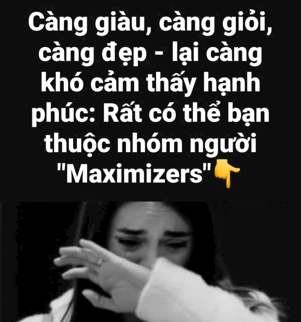 Maximizers (Người tối ưu hóa): Những người luôn muốn đưa ra lựa chọn tốt nhất tuyệt đối. họ dành rất nhiều thời gian để so sánh và thường cảm thấy ít hạnh phúc hơn.