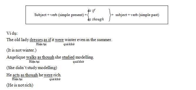– Mệnh đề đằng sau 2 thành ngữ này thường hay ở dạng điều kiện không thể thực hiện được và chia làm 2 thời: