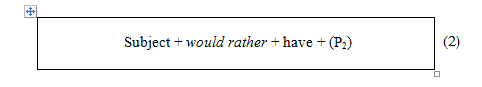 ở thời quá khứ sau would ratherhave + past participle (hay còn gọi là phân từ 2 – P2) – Công thức 2.