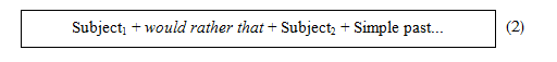 ở  loại câu này thành ngữ được sử dụng sẽ là Would rather that (ước gì, mong gì) và chia làm những mẫu câu như sau: