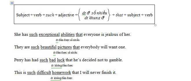 Lưu ý: Không sử dụng một danh từ sau so. Còn muốn dùng danh từ thì xem các cấu trúc dưới đây.