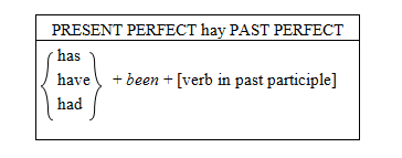 – Mọi biến đổi về thời và thể đều  nhằm vào động từ to be, còn phân từ 2 giữ nguyên (xem các công thức dưới đây.)