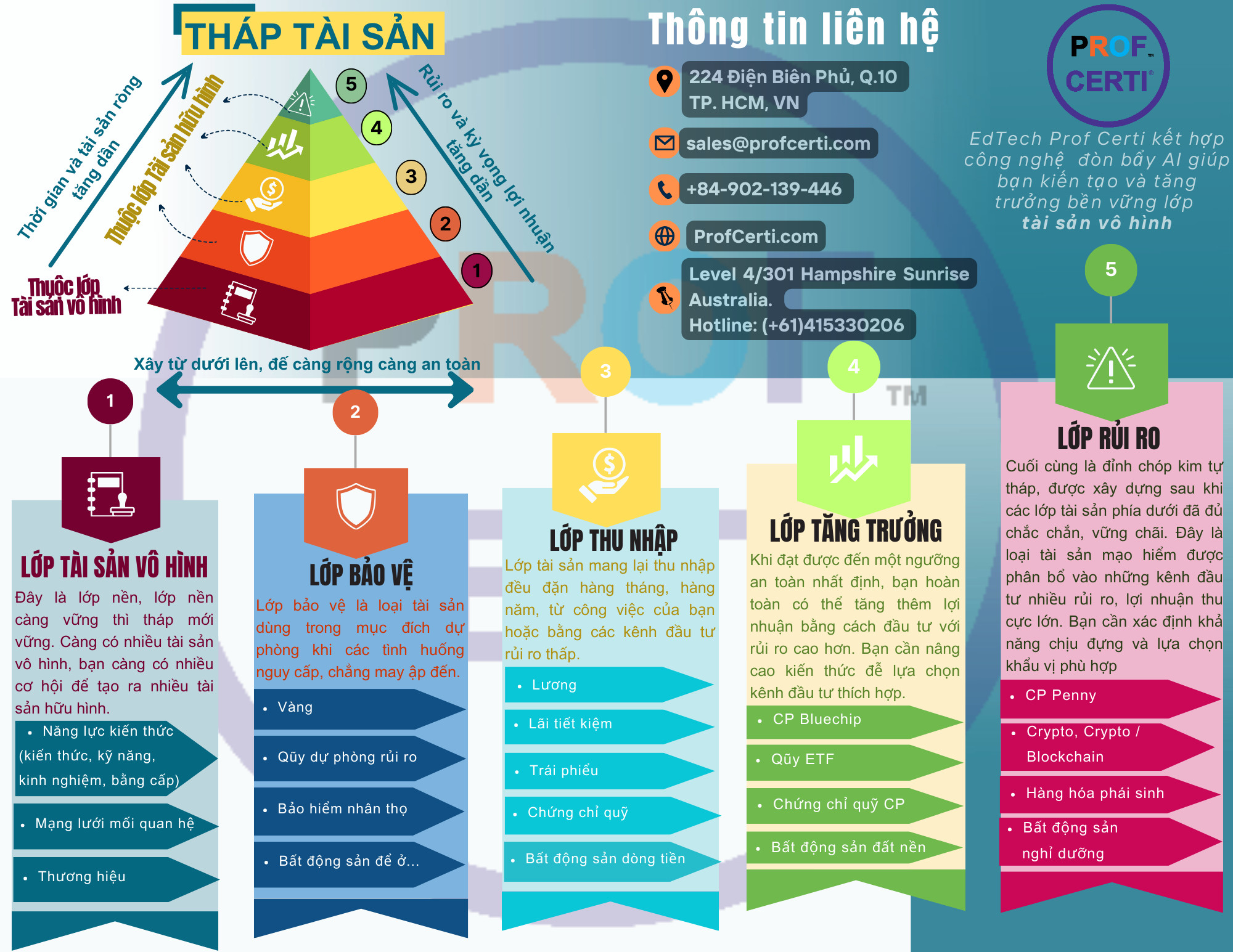 EdTech Prof Certi là nền tảng giáo dục kết hợp công nghệ tiên tiến AI để hỗ trợ bạn xây dựng và phát triển lớp tài sản vô hình một cách nhanh chóng và bền vững, từ đó tạo nền tảng vững chắc cho sự kiến tạo của các lớp tài sản tiếp theo.